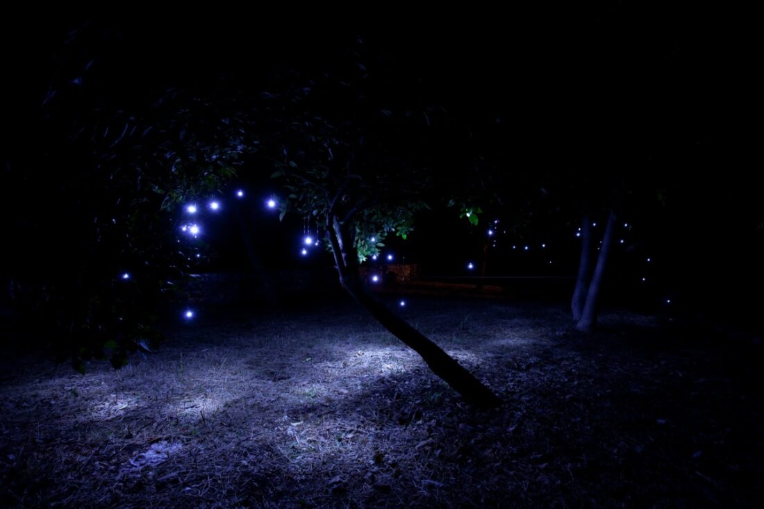A path that peeps into thought as if a set of lights were thinking. We follow the clues like Hop-o'-My-Thumb: first a dim light like an insight, then an explosion which is, in turn, garden and sky, measures the area like a summer Milky Way, Size: 2000