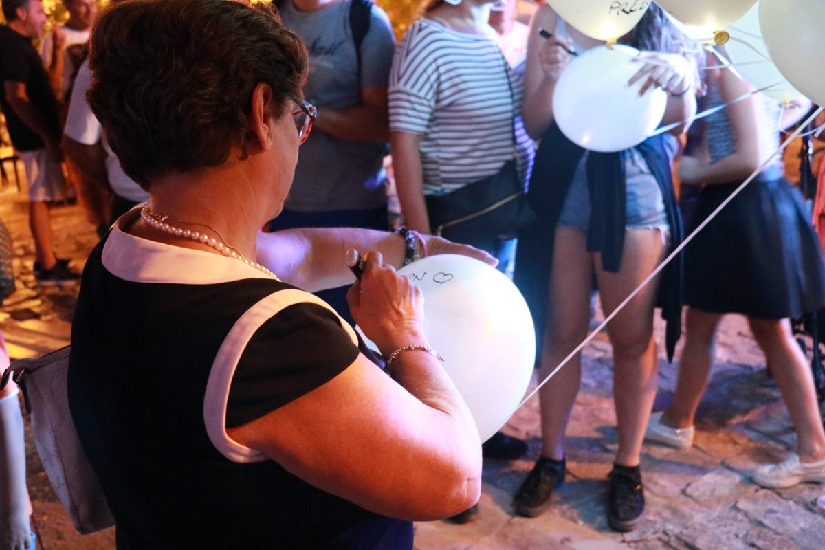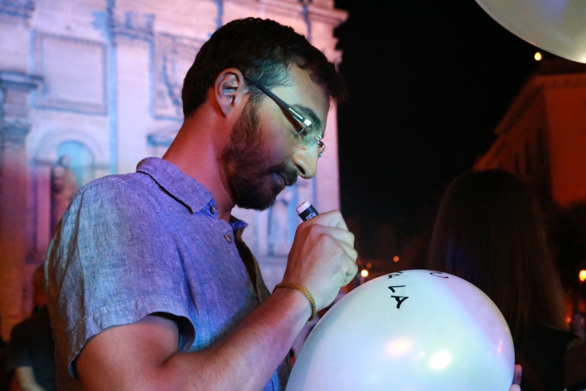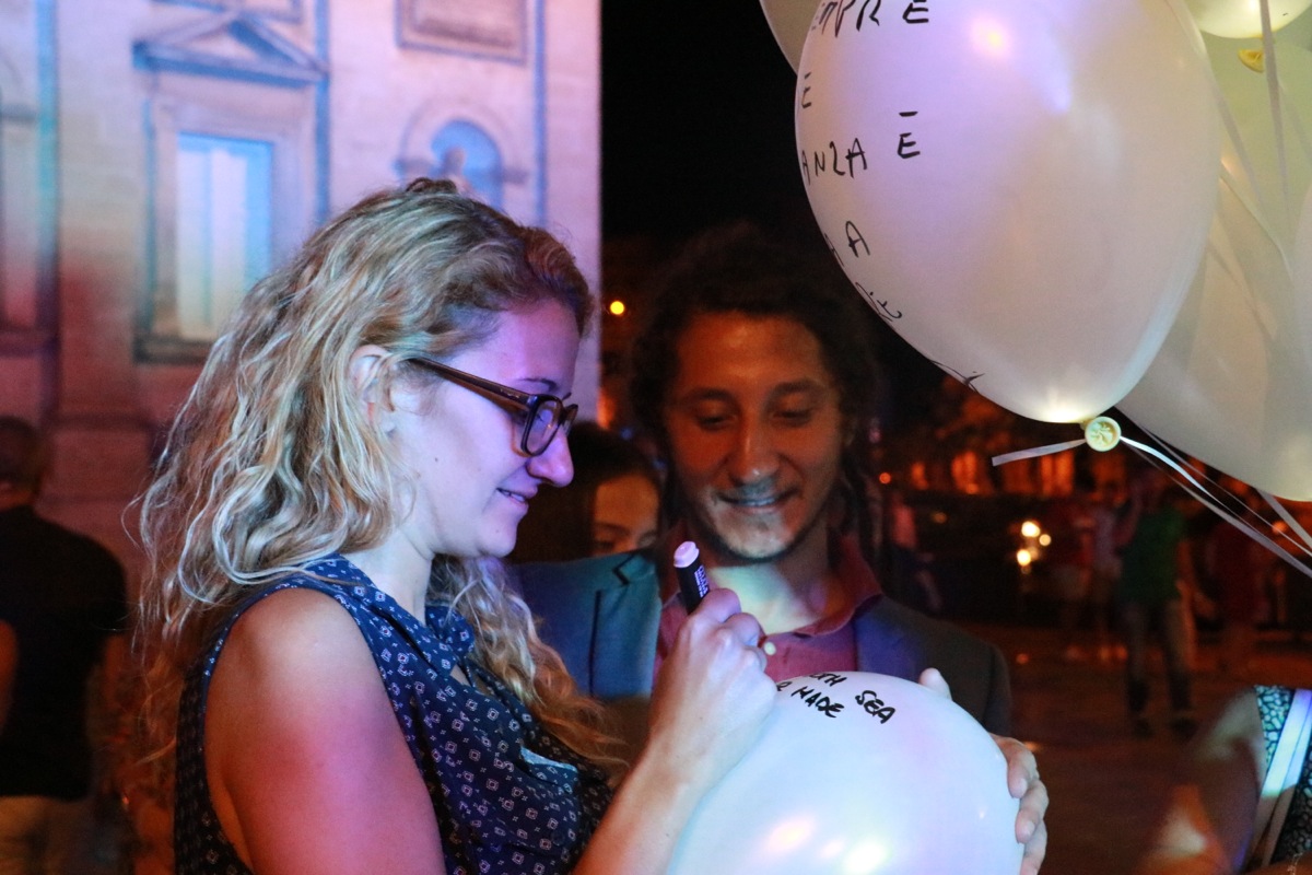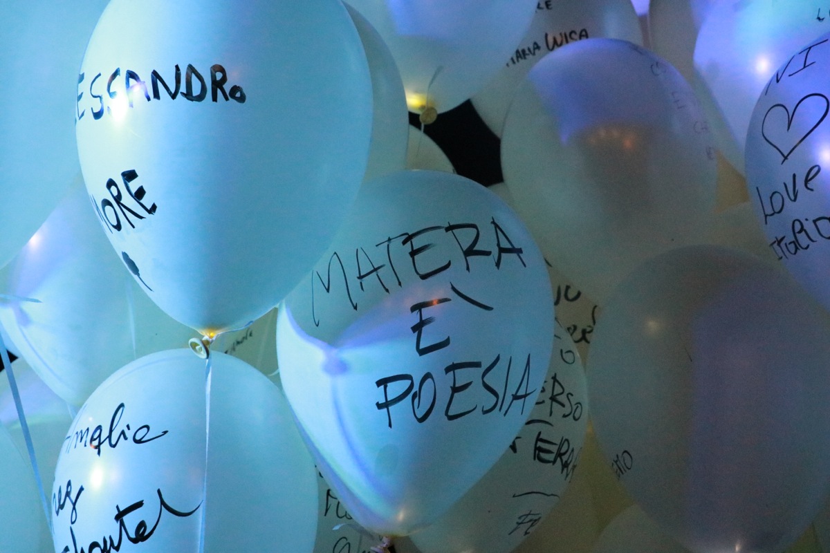 The performance started when 100 helium balloons were brought into Matera’s main square and people were given markers. They immediately understood the mechanism and interacted spontaneously, in a similar way to what happens on socials, though with more poetic and deep meaning.