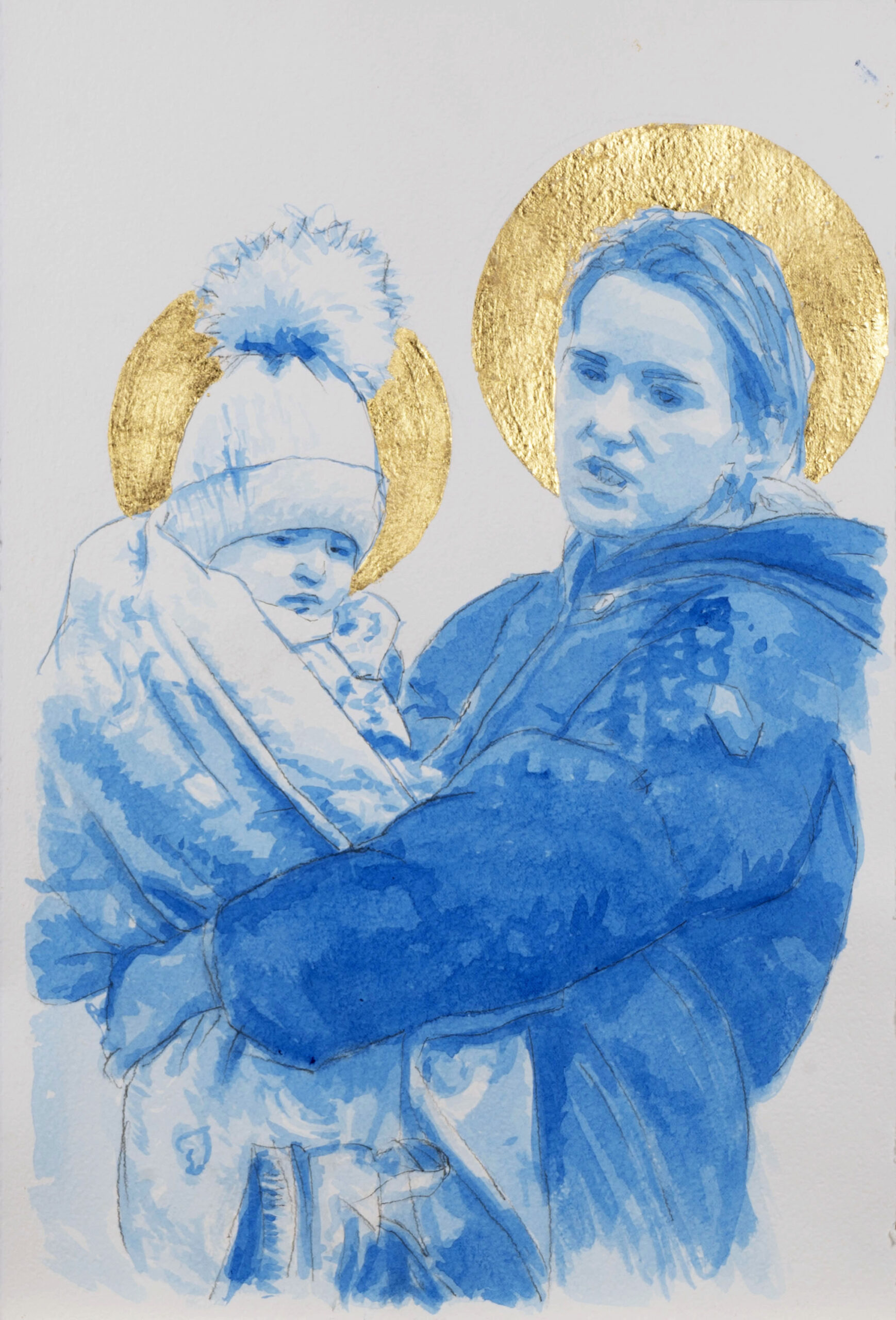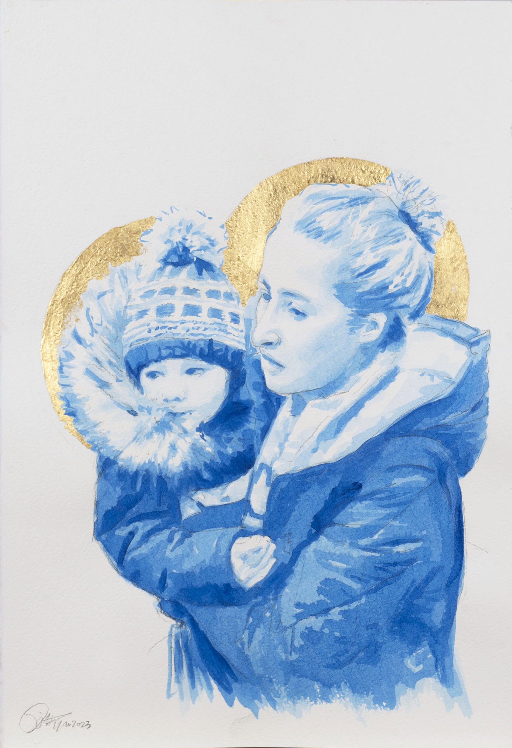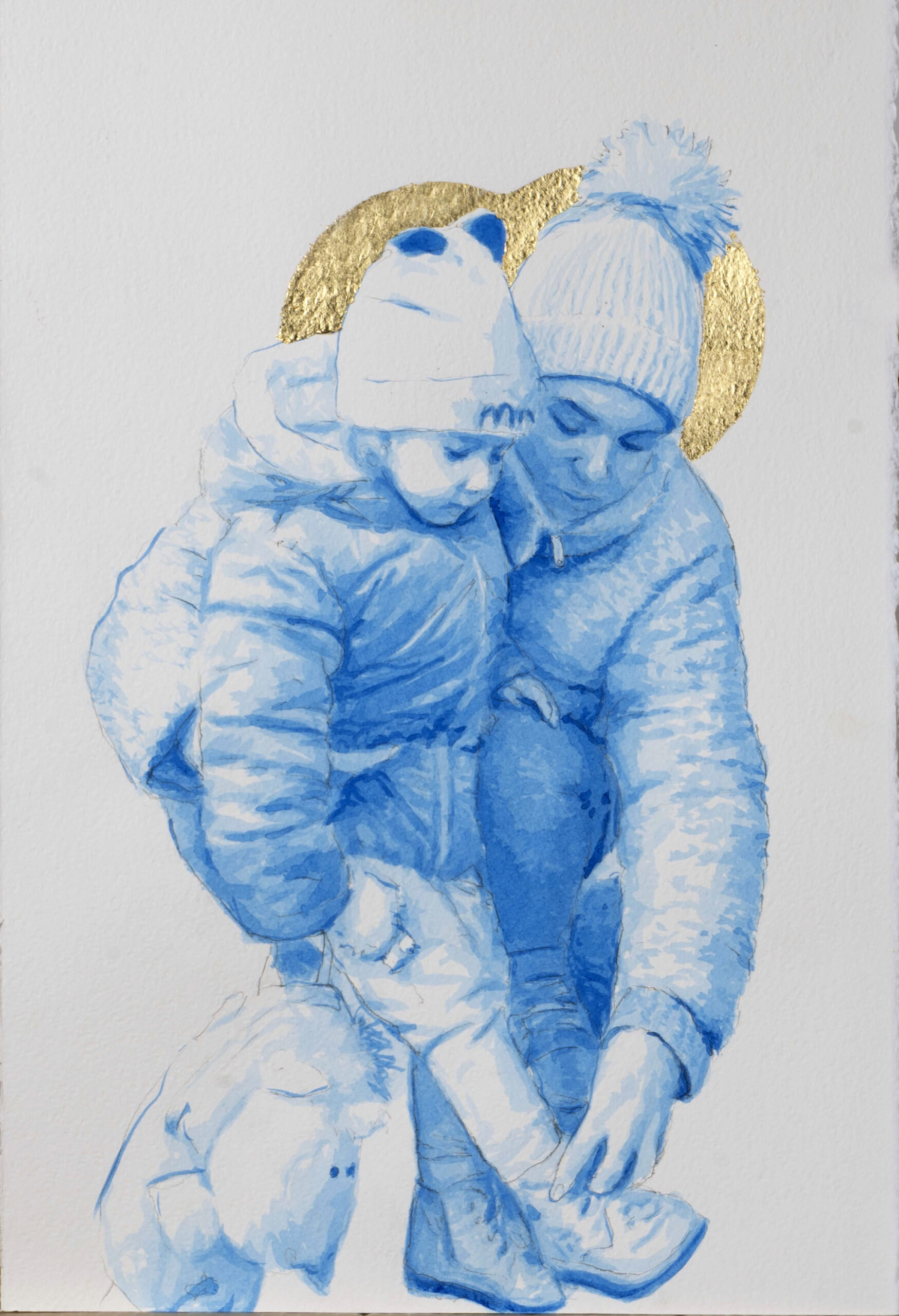 Eleison is an Ancient Greek verb which describes the visceral and intimate Love a mother feels for her child. This verb gives its name to a collection of watercolors which depict this feeling inspired by pictures of migrant mothers. The splashes of color trace the desperation, the challenge, the fears, celebrating the deepest and most powerful Love of all.