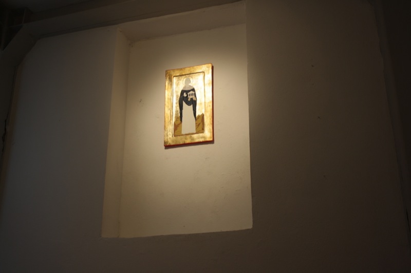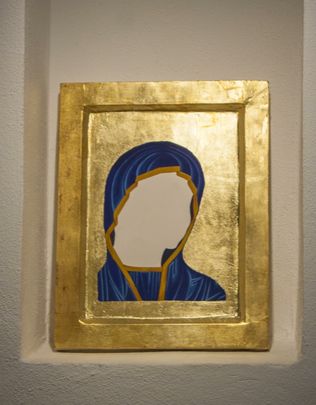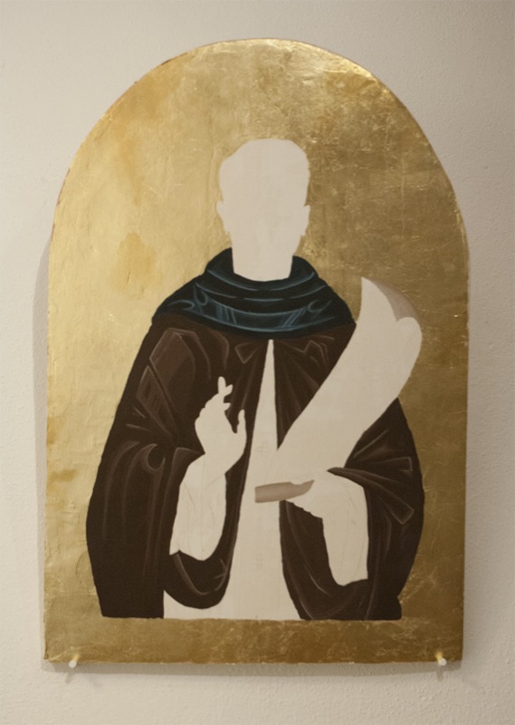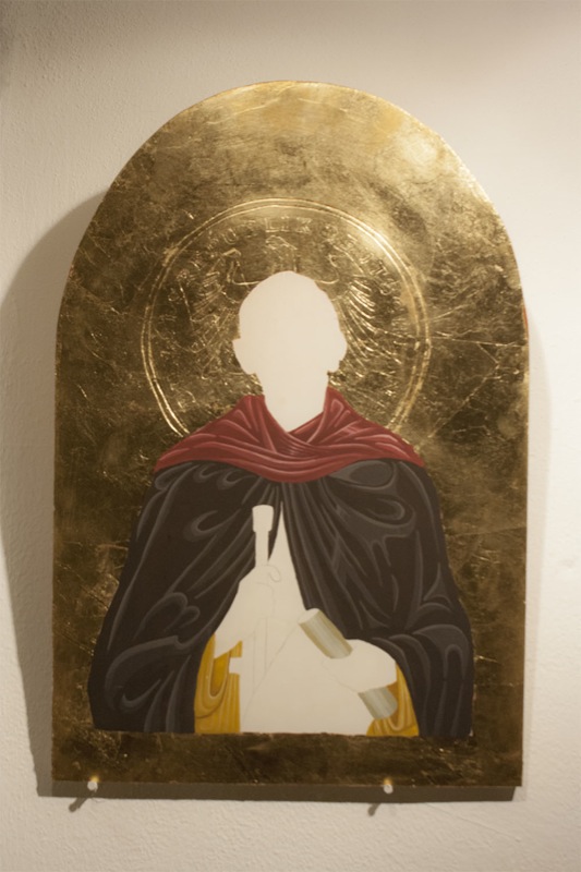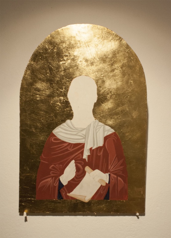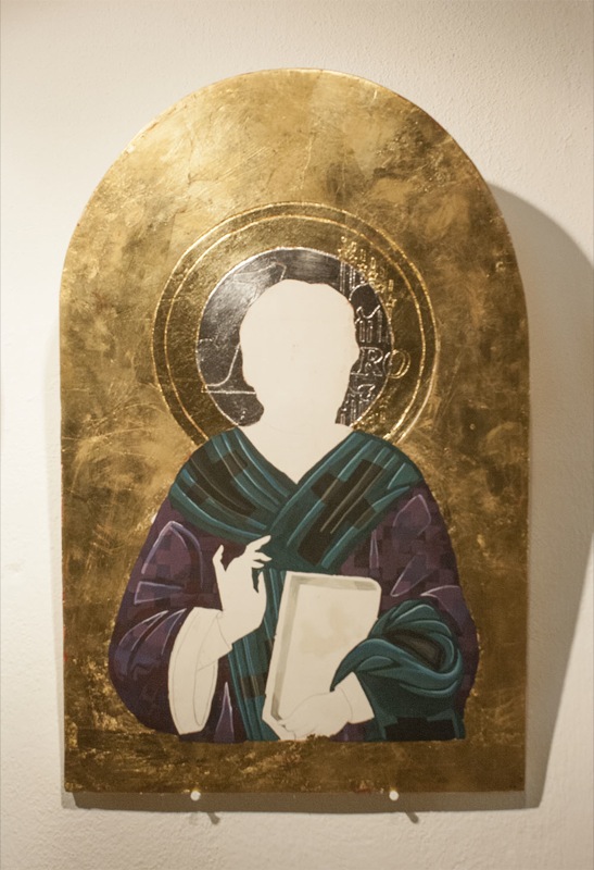 For “invisible hand” the artist has decided to use the old painting technique of ‘egg tempera’ for the first time. The artist has decided to strictly respect the rules and techniques of Byzantine icons. Transposing this technique in a contemporary way, Riniolo is asking: “Who has the power to rule our society?” The answer is written in our mutual history hidden in the concept of invisible hand. .