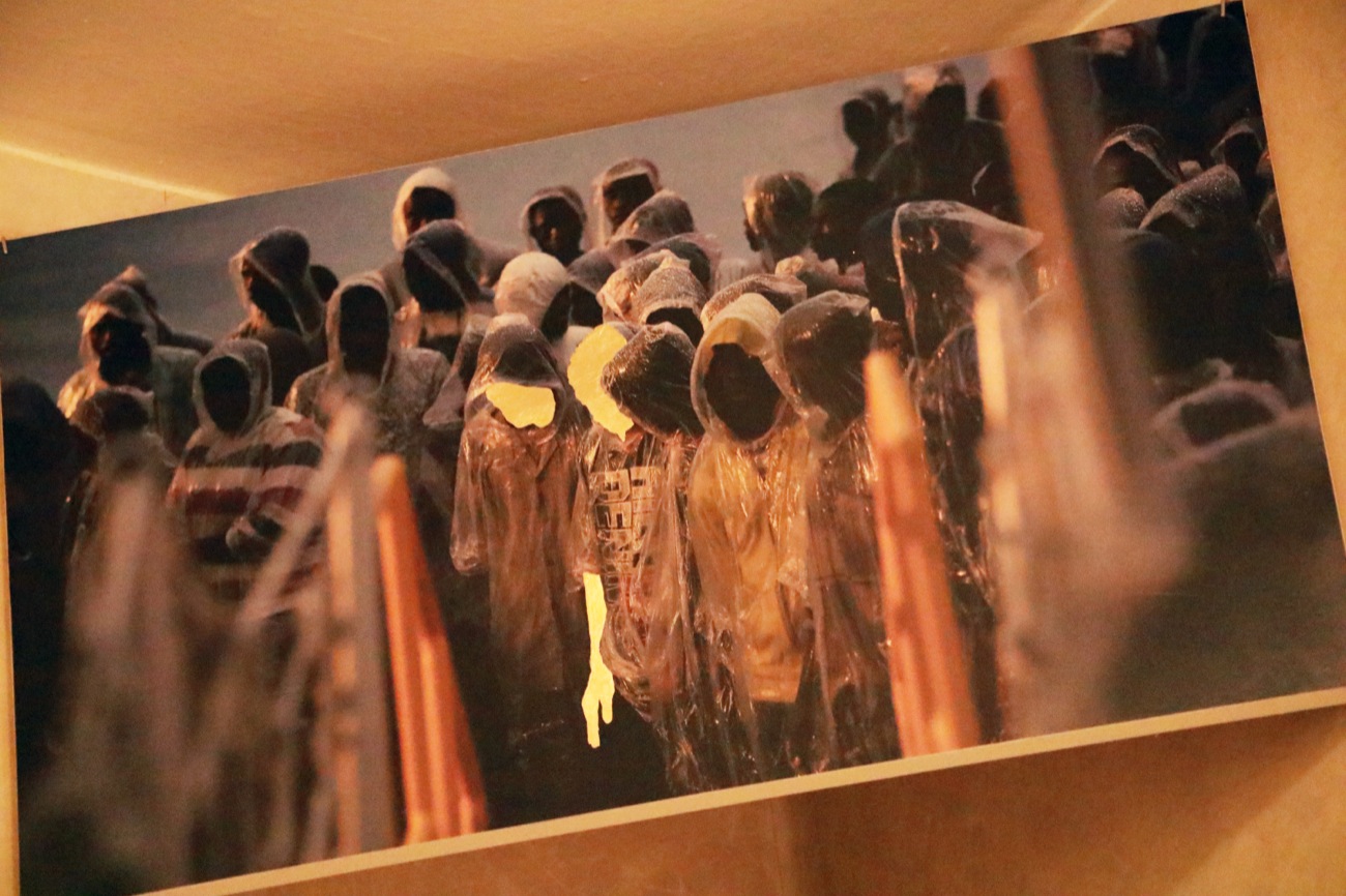 For this reason, the work takes images from Cie and covers one or two characters with gold-leaf: they are the angels, representing holiness, like in the Byzantine artstyle.