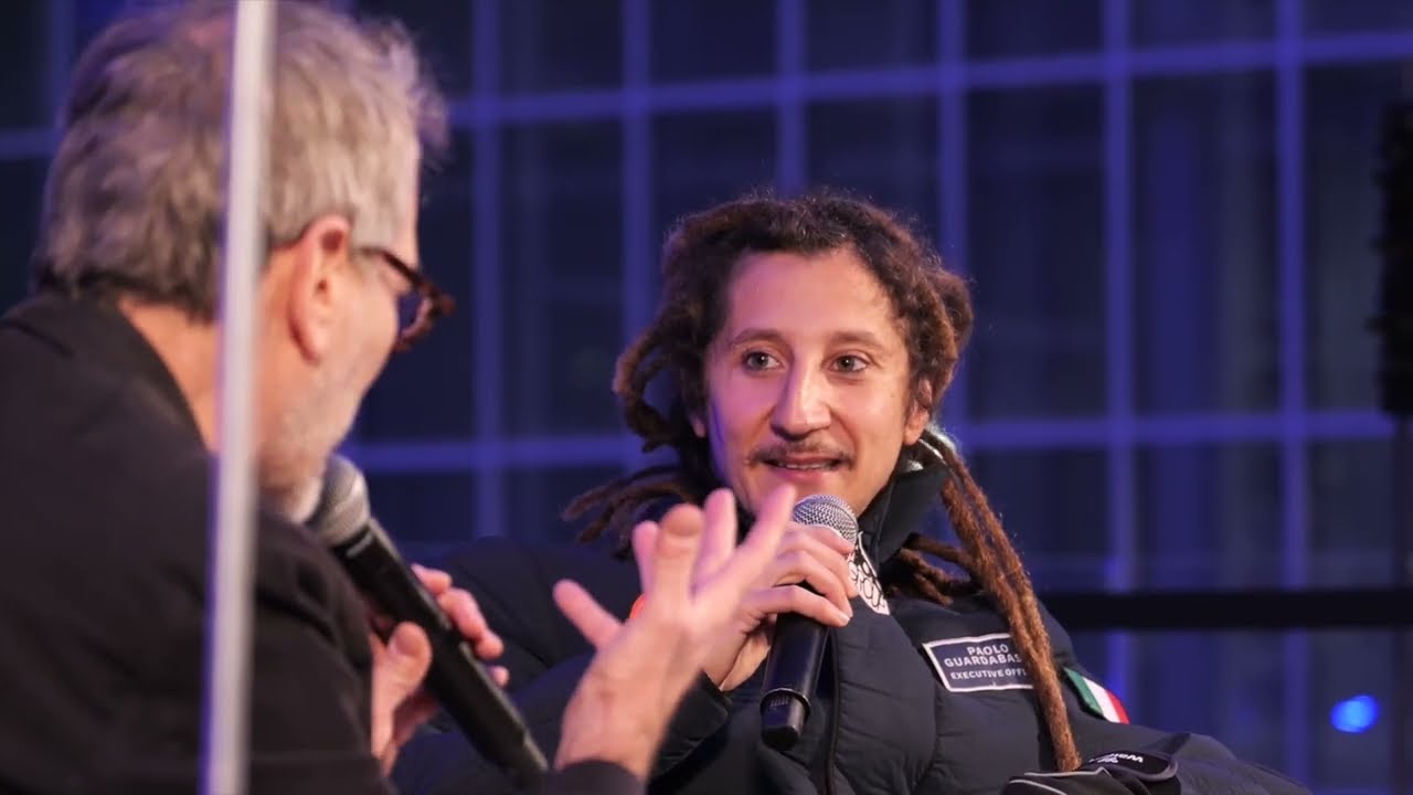 Filippo Riniolo’s performance with Corrado Formigli drew a large audience, moving between a critique of space imaginaries and a post-capitalist vision.