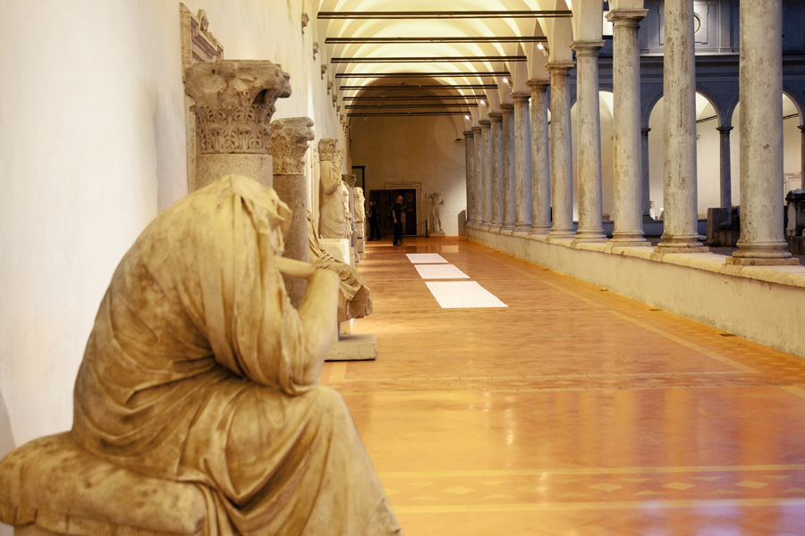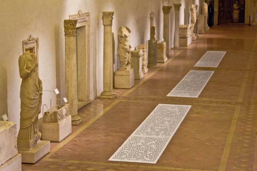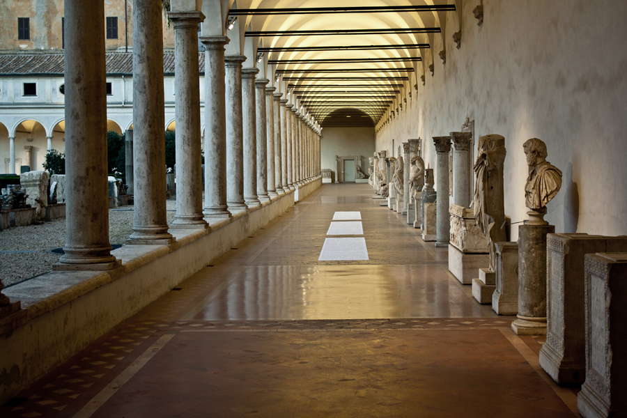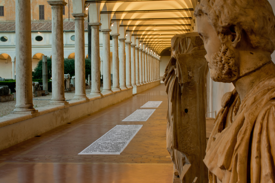 L’opera è un installazione posta nel chiostro di Michelangelo delle Terme di Diocleziano a Roma