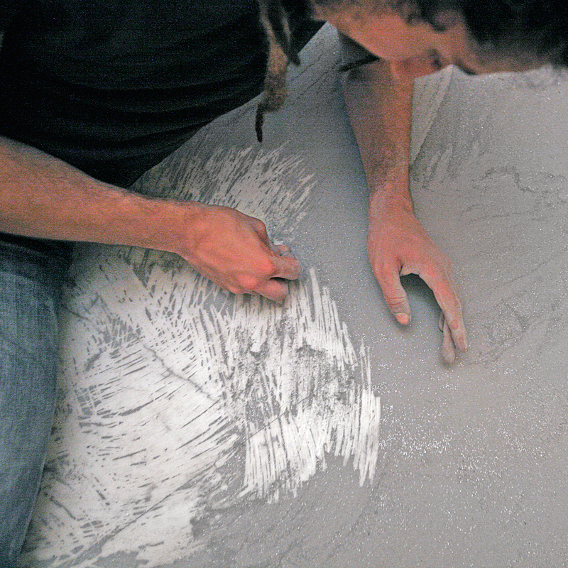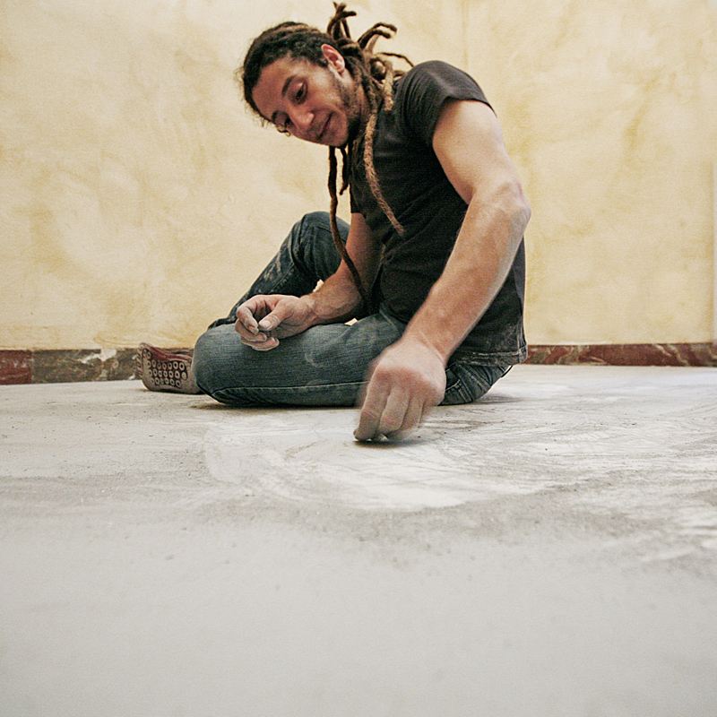 Sisifo è una performance in cui si procede a grattare, con una monetina, il pavimento di una stanza rivestito da una patina d’argento.